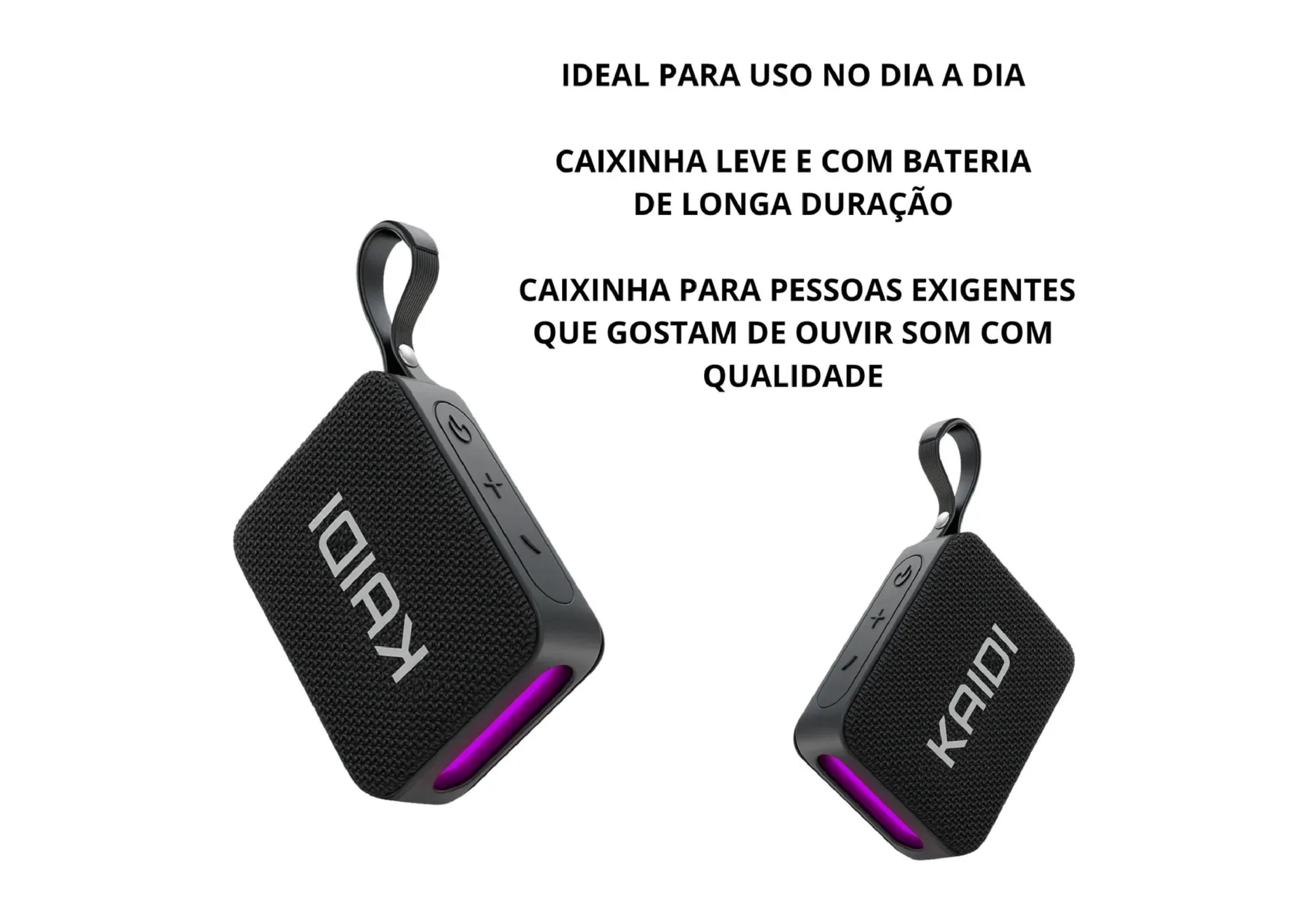 Perfeita para uso em mesas e pequenos espaços, esta caixa de som é intuitiva e fácil de usar, mesmo para aqueles que não são especialistas em tecnologia. Dê um toque especial às suas reuniões, eventos ou momentos de lazer com a Mini Caixa de Som Portátil Kaidi. Descubra a combinação ideal de som, estilo e praticidade e transforme a maneira como você ouve música.