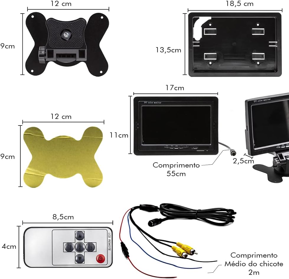 O Monitor TFT-LCD 7 polegadas possui tela colorida na visualização, acompanha controle remoto e possui alta resolução de imagem. Perfeito para ser instalado em seu automóvel.
